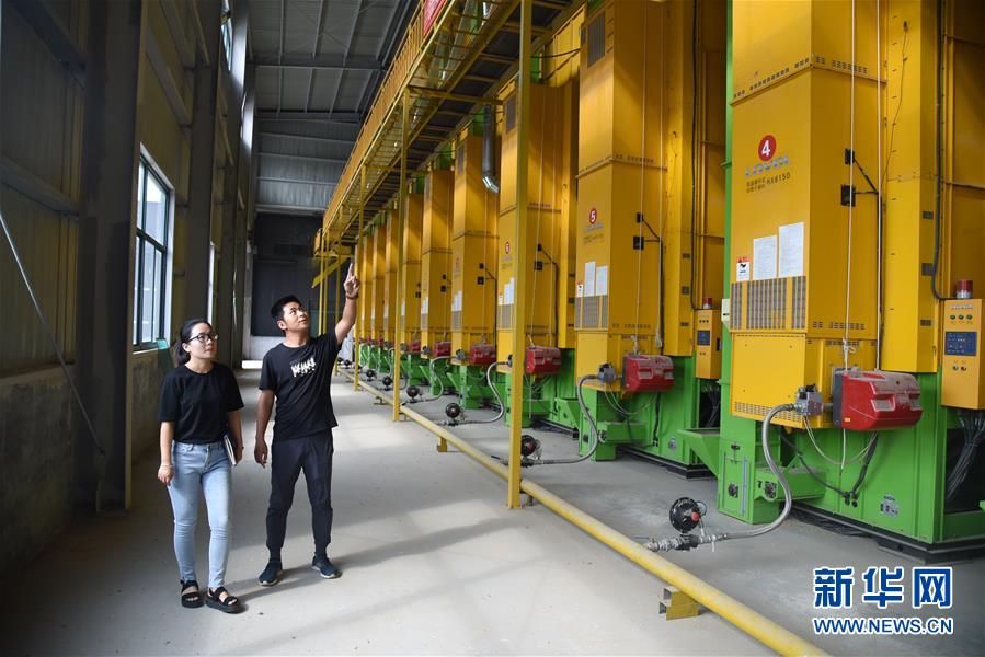 在山東省德州市平原縣的農場里,楊春雷(右)和卜璐璐在烘干車間查看引進的高科技設備——低溫循環式谷物干燥機(8月22日攝)。 新華社記者 王凱 攝