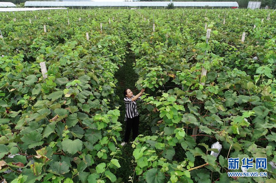 王衛花在葡萄園內忙碌(8月21日攝)。 新華社記者 邵瑞 攝