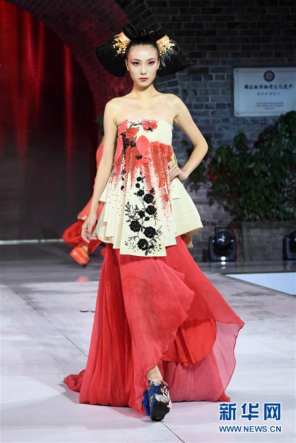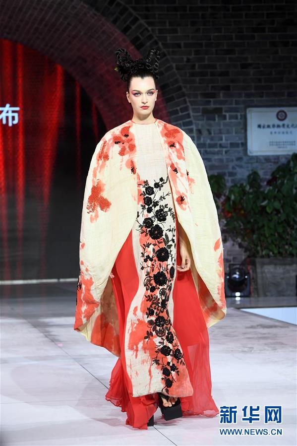 9月25日,模特在榮昌夏布·張義超非遺時尚大秀上展示時裝設計師張義超的時裝作品。