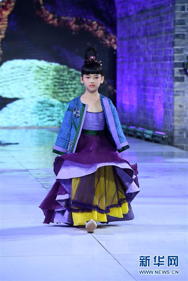 9月25日,小模特在榮昌夏布·張義超非遺時尚大秀上展示時裝設計師張義超的時裝作品 新華社記者 唐奕 攝