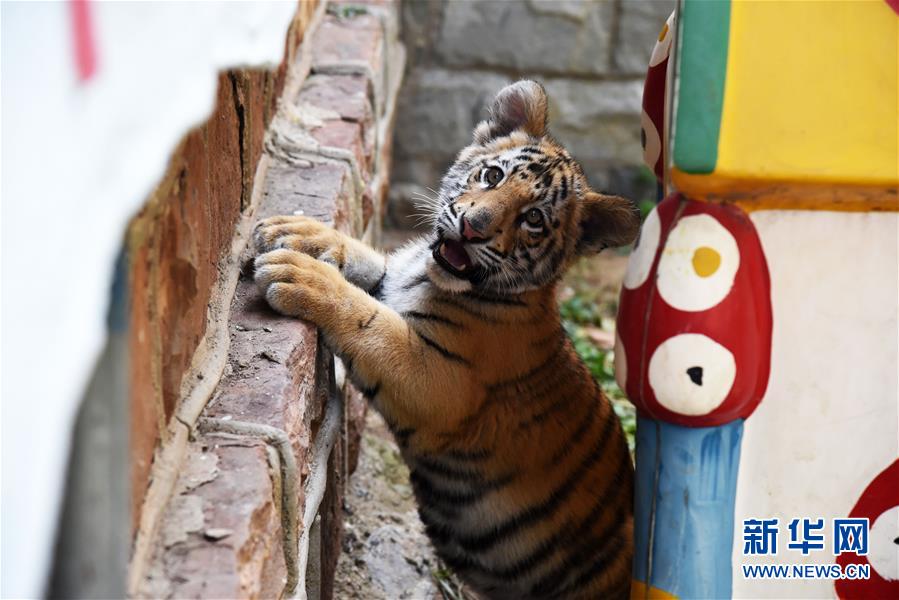 濟(jì)南動(dòng)物園人工飼養(yǎng)孟加拉虎寶寶茁壯成長(zhǎng)