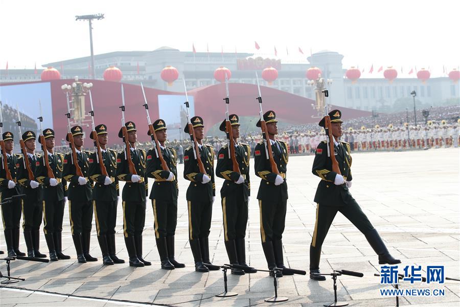 10月1日上午,慶祝中華人民共和國成立70周年大會在北京天安門廣場隆重舉行。這是標兵入場。新華社記者劉續攝