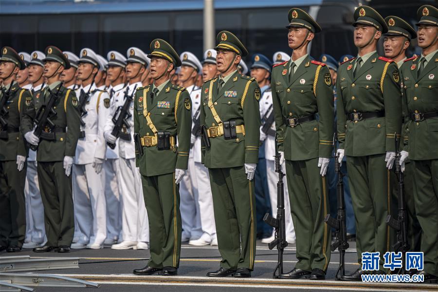10月1日上午,慶祝中華人民共和國成立70周年大會在北京天安門廣場隆重舉行。這是受閱部隊官兵在慶祝大會上唱國歌。新華社記者江文耀攝