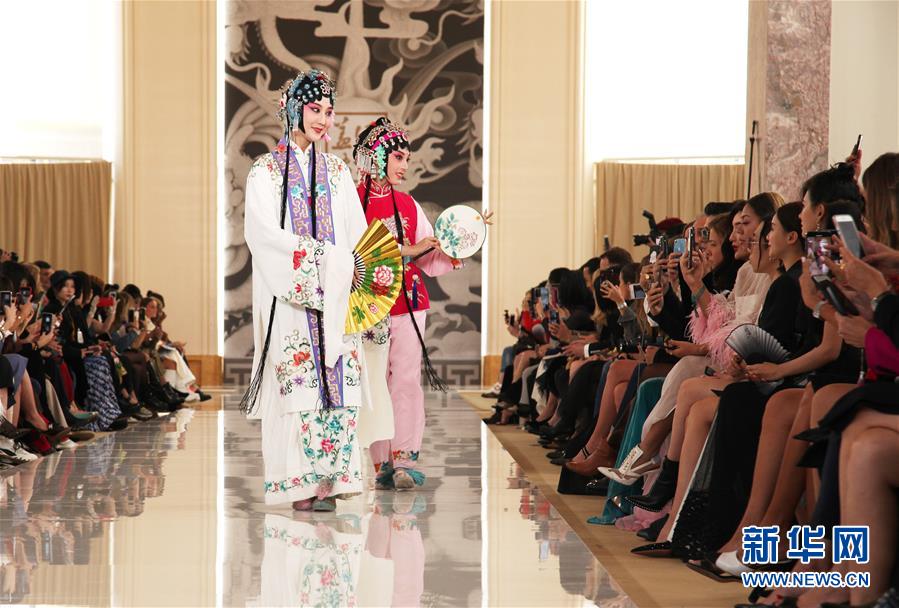 9月30日,在法國巴黎,昆曲表演亮相“蓋婭傳說·熊英”2020春夏系列發布會。新華社記者 唐霽 攝