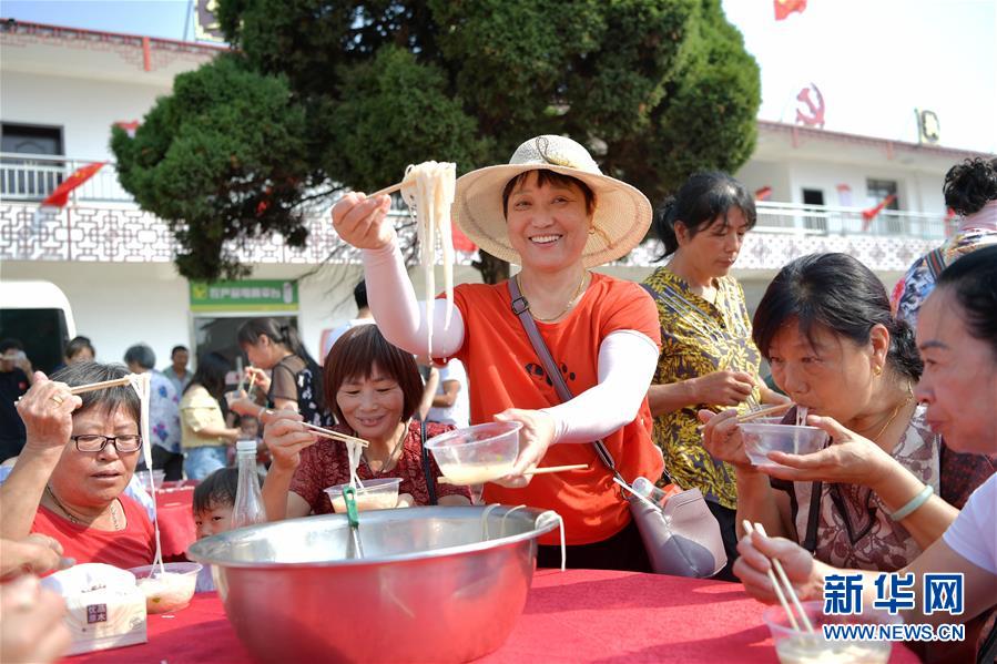 10月1日,在江西省南昌市南昌縣銀三角敷林村,當地村民舉行“同吃國慶面 共迎國慶節”活動。當日是國慶節,全國各地的人們用各種方式歡度節日。新華社記者 彭昭之 攝