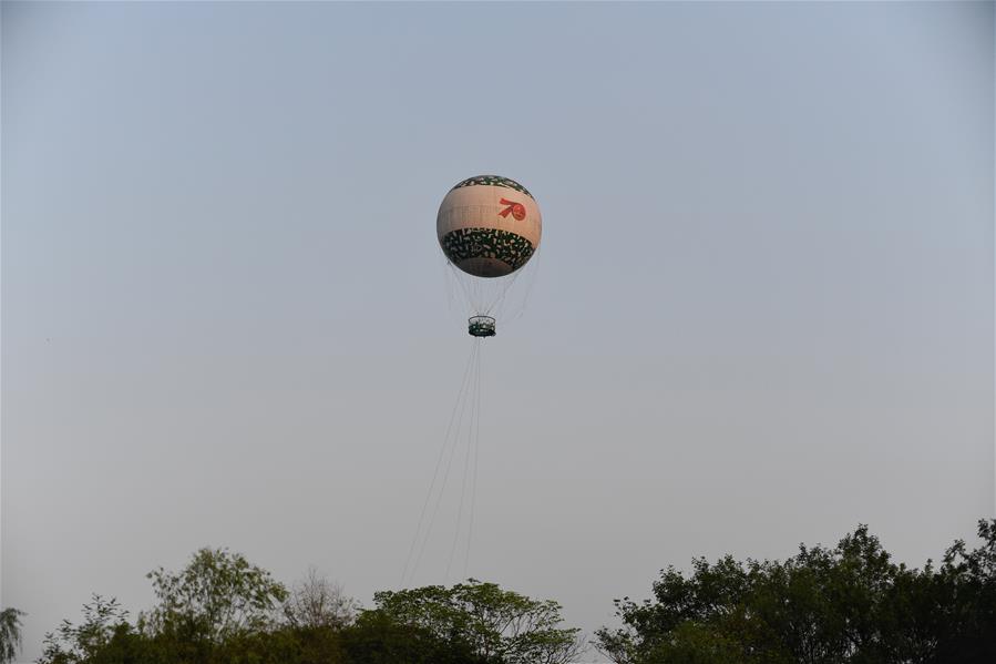 10月3日,游客在西溪國家濕地公園搭乘“空中攬勝”高空氦氣球觀光。 當日是國慶假期第三天,大批游客來到位于杭州的西溪國家濕地公園游玩,在江南詩意的環境中休閑度假。 新華社記者 黃宗治 攝