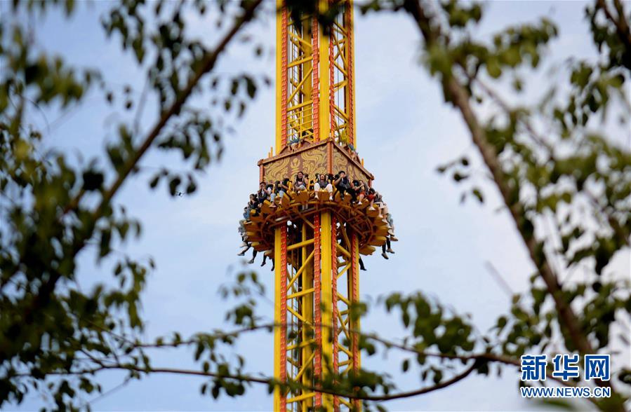 10月3日,游客在河北邯鄲市磁縣方特主題公園內游玩。 當日是國慶假期第三天,人們紛紛走出家門,樂享假期。 新華社記者 王曉 攝