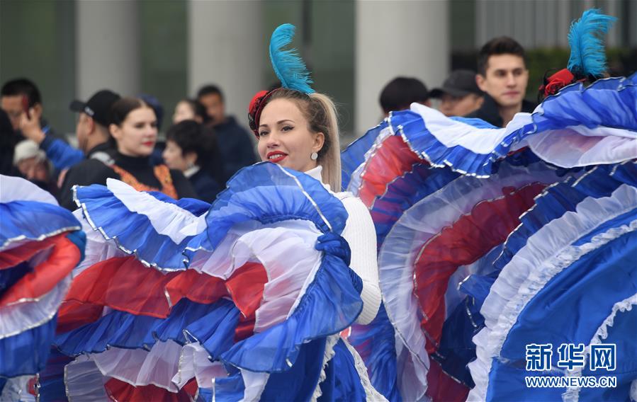 演員在北京世園會園區表演(4月29日攝)。新華社記者 李欣 攝