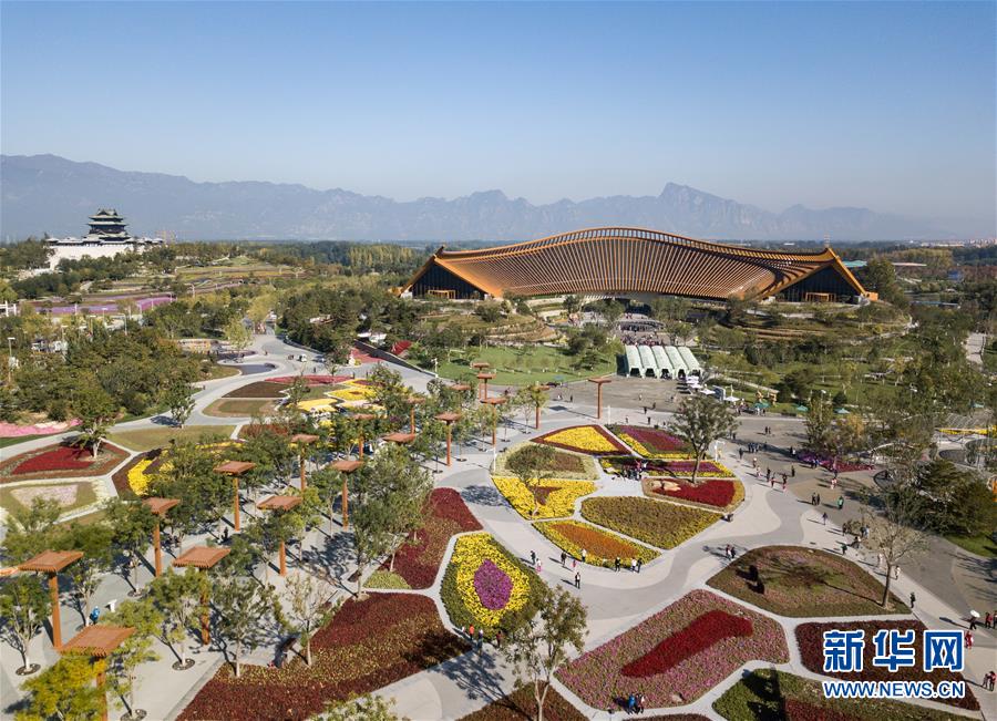 游客在北京世園會園區參觀游覽(10月7日無人機拍攝)。新華社記者鞠煥宗攝