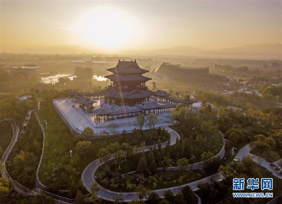 北京世園會園區內的永寧閣(10月6日無人機拍攝)。新華社記者才揚攝