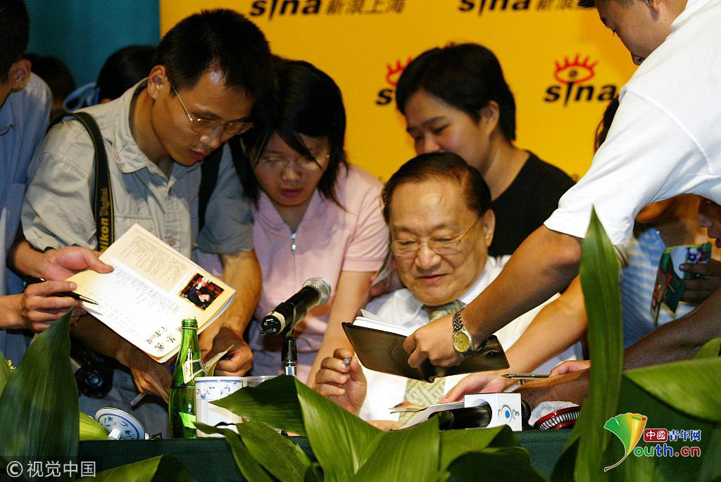 2003年7月25日,杭州,金庸給金迷簽名。圖片作者:史訓鋒