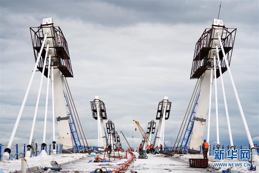 工人在大橋上進行橋面鋪裝施工作業(8月19日攝)。新華社記者 王建威 攝