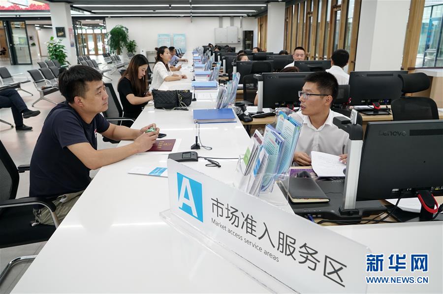 企業工作人員在雄安新區政務服務中心內辦理業務(8月30日攝)。新華社記者牟宇攝
