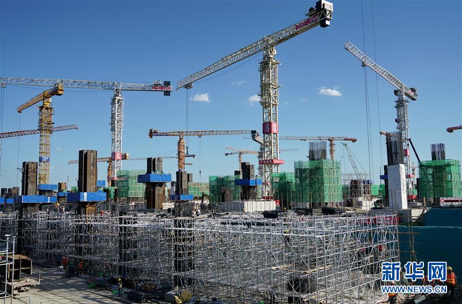 京雄城際鐵路雄安站總建筑面積47萬平方米,地上3層,地下2層,其中地下主體結構將于近期完成,即將轉入地上主體結構施工。新華社記者邢廣利攝