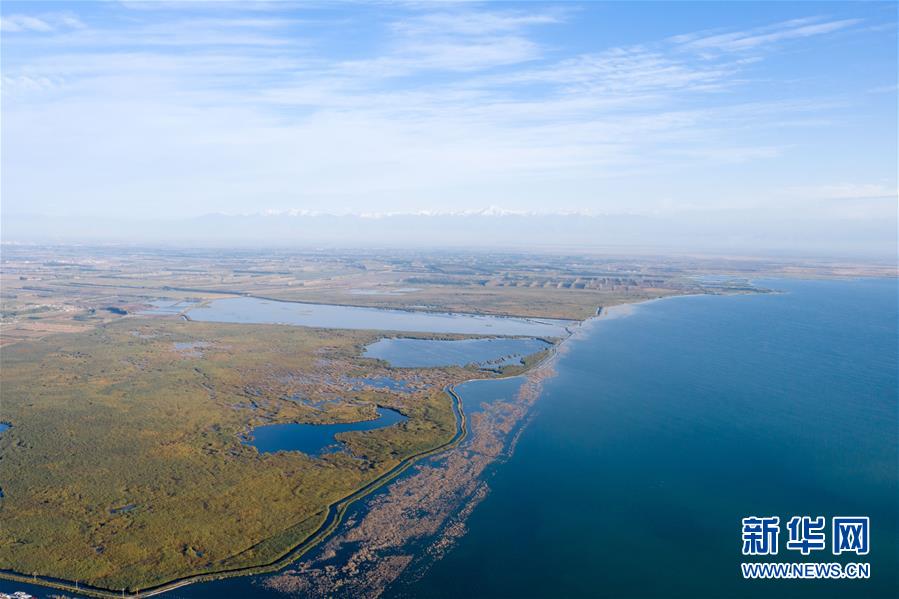 這是新疆博斯騰湖美景(10月12日無人機拍攝)。入秋以來,新疆博斯騰湖碧波蕩漾,美景如畫,吸引各地游客前來游玩。新華社記者丁磊 攝