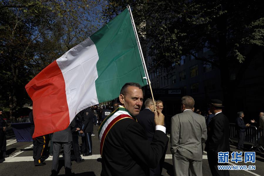 10月14日,在美國紐約曼哈頓第五大道,一名男子手舉意大利國旗參加哥倫布日游行。當天,紐約舉行哥倫布日游行,紀念意大利航海家克里斯托弗·哥倫布首次到達美洲大陸。哥倫布日游行也是美國最大的展示意大利文化傳統的慶祝活動。新華社記者李木子攝