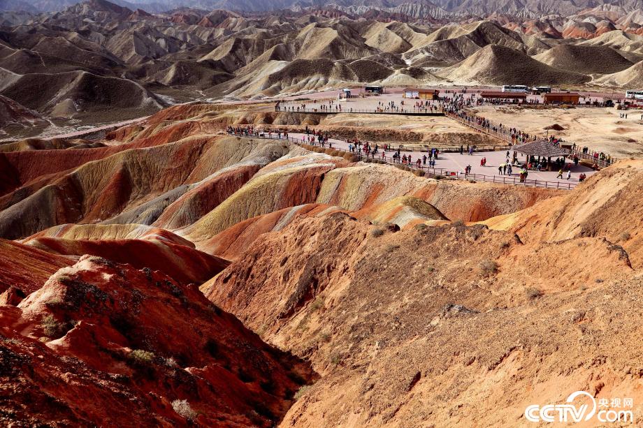 央視網消息:2019年10月15日,金秋時節,位于甘肅省張掖市臨澤縣的七彩丹霞景區進入旅游旺季,吸引眾多游人紛至沓來。張掖七彩丹霞景區,分布面積約50公里,是中國北方干旱地區發育最典型的丹霞地貌。在方圓數十平方公里的范圍內,隨處可見有紅、黃、橙、綠、白等多種鮮艷的色塊或線條,把一座座山峰,一條條溝壑,裝點成一幅幅絢麗多姿、燦爛奪目的畫圖。圖片來源:視覺中國