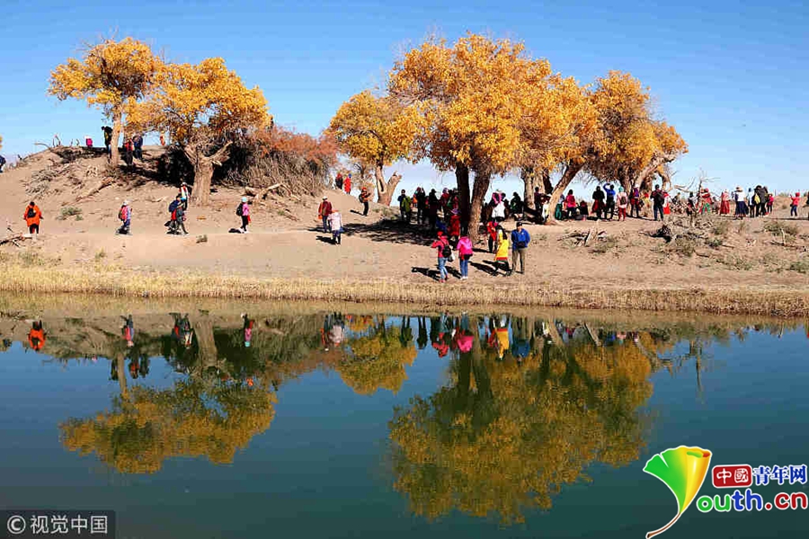 中國青年網北京10月9日電2018年10月7日至8日,內蒙古自治區阿拉善盟額濟納旗,地處巴丹吉林沙漠。額濟納河兩岸壯觀的胡楊林堪稱大漠的一顆綠色明珠,每年深秋時節的第一場秋霜過后,大片的胡楊樹葉由綠變黃,一眼望去,陽光下金色的樹葉襯著湛藍的天空于風中婆娑起舞,鮮明的影調,亮麗的色彩,令人流連忘返。