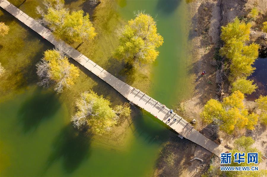 10月10日,在內蒙古自治區額濟納旗,游客在觀賞胡楊林。金秋時節,內蒙古自治區額濟納旗胡楊林如同披上金裝,成為大漠中的一抹亮色,吸引眾多中外游客前來觀賞游玩。新華社記者劉磊攝