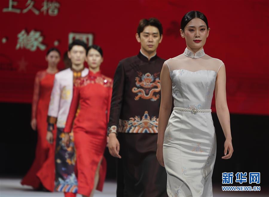 10月16日,模特在展示婚慶禮服。 當日,“愿·緣·圓”上久楷婚慶主題秀在江蘇省蘇州市吳江區盛澤鎮舉行。 新華社記者 季春鵬 攝