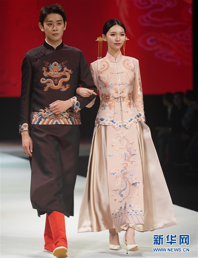10月16日,模特在展示婚慶禮服。 當日,“愿·緣·圓”上久楷婚慶主題秀在江蘇省蘇州市吳江區盛澤鎮舉行。新華社記者 季春鵬 攝