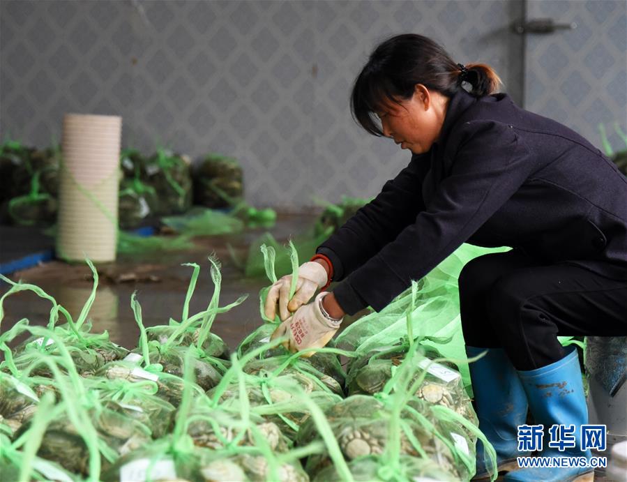 10月17日,東營市惠澤農業科技有限公司黃河口大閘蟹養殖區的工人在包裝大閘蟹。新華社記者 王凱 攝