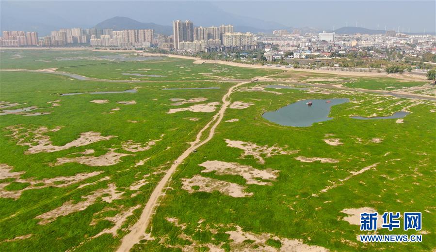這是江西省廬山市鄱陽湖湖區干涸的情況(10月9日無人機拍攝)。新華社記者胡晨歡攝