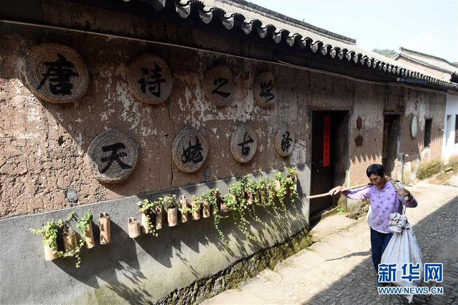 10月24日,班竹村一名老人挑貨走在村內的道路上。新華社記者韓傳號攝