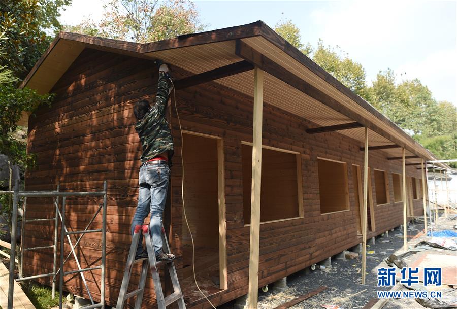 10月24日,一名工人在對班竹村新建的旅游設施進行外部裝修。新華社記者韓傳號攝