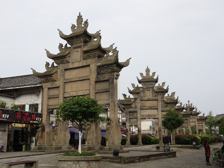 隆昌石牌坊大多為四柱三門三重檐五滴水石質牌樓式建筑,平均面寬9米,通高11米,坊間距離最近處僅10余米。李仁奇攝