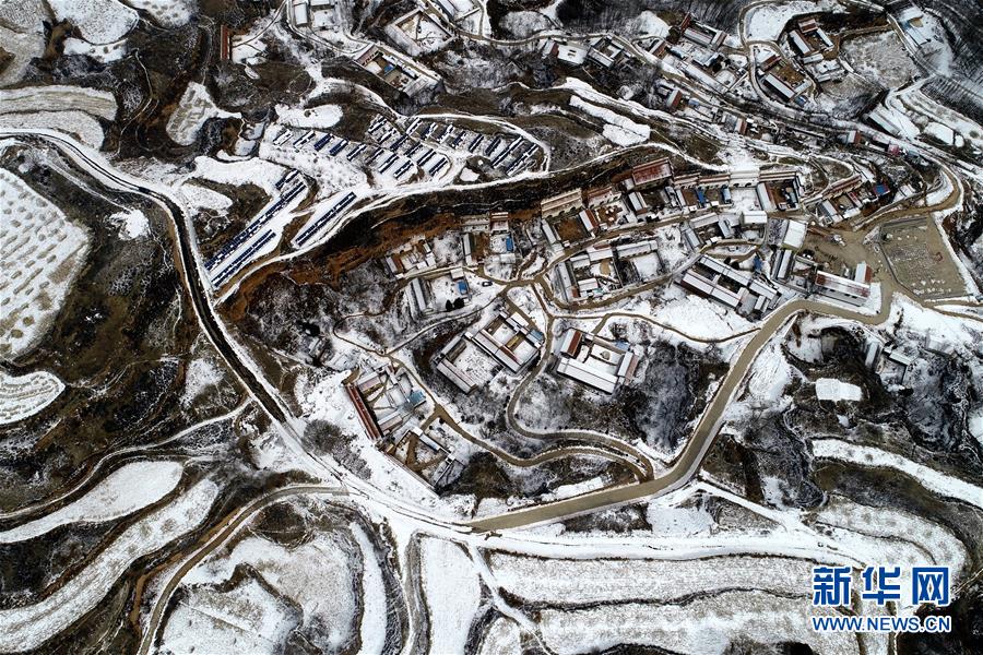 山西省武鄉縣大有鄉王莊溝村雪景(2月15日無人機拍攝)。
