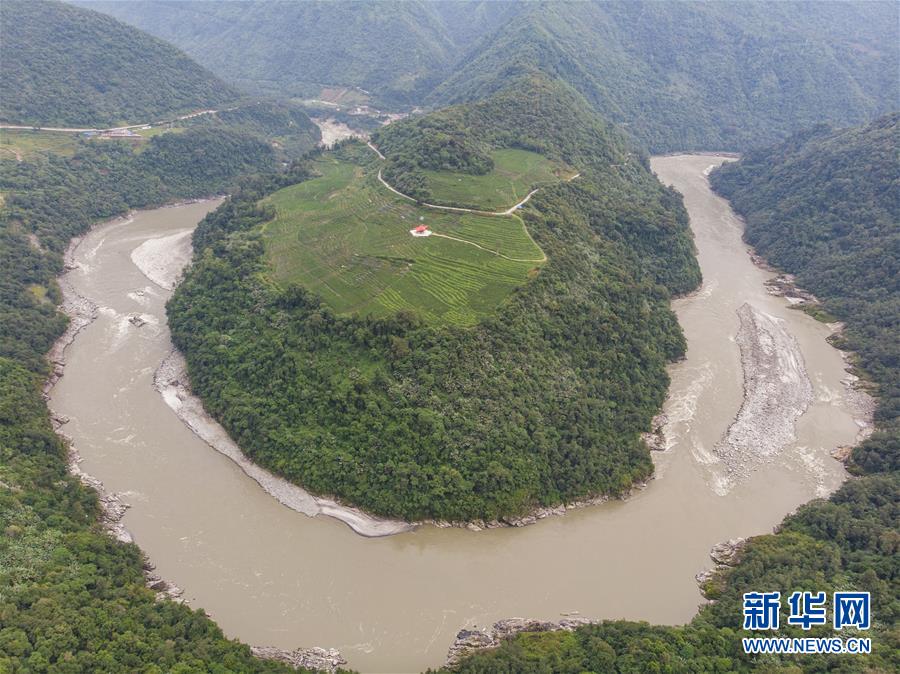 這是墨脫縣果果塘大拐彎(10月24日無人機拍攝)。新華社記者田金文攝