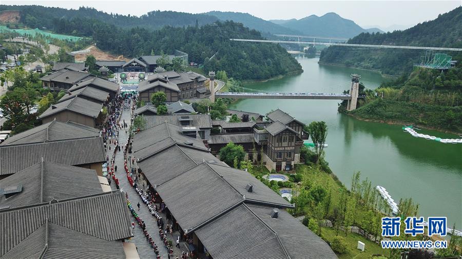 7月2日無人機拍攝的丹寨萬達小鎮一角。2017年7月,貴州省丹寨縣的丹寨萬達小鎮對外開放。兩年來,丹寨萬達小鎮游客接待量持續增長,為700余名貧困戶提供就業崗位,有力助推了丹寨縣的脫貧攻堅工作。新華社記者歐東衢攝