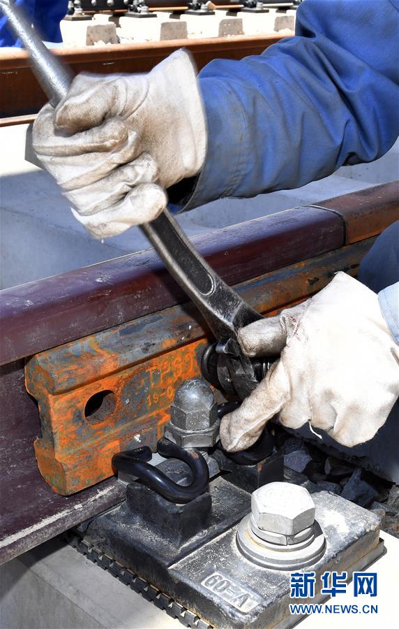 6月6日,負責鋪軌的中鐵十一局集團的建設者在現場作業。新華社記者李鑫攝