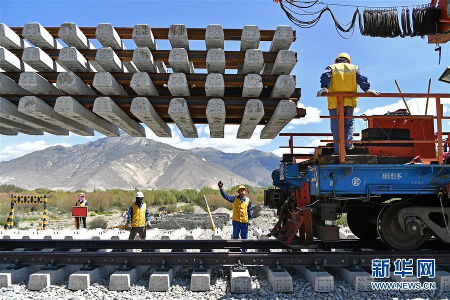 6月6日,負責鋪軌的中鐵十一局集團的建設者在現場作業。新華社記者普布扎西攝