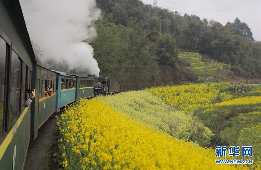 初春時(shí)節(jié),在花海中穿行的嘉陽(yáng)小火車迎來(lái)了每年的旅游旺季,眾多游客慕名前來(lái)乘坐。