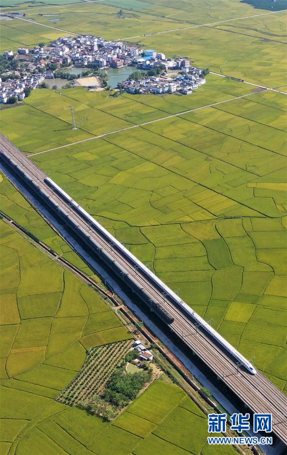 眼下,廣西賓陽(yáng)縣古辣鎮(zhèn)大面積稻田進(jìn)入收獲期,一列列南來(lái)北往的動(dòng)車從稻田間飛馳而過(guò),構(gòu)成一幅幅美麗的豐收?qǐng)D畫。