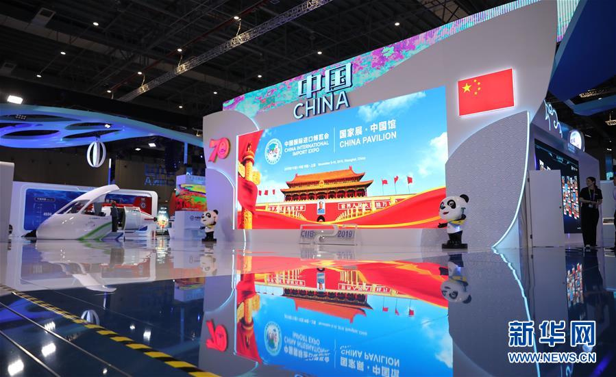 這是11月2日拍攝的第二屆中國國際進口博覽會國家展展區內的中國館大屏幕。 當日,第二屆中國國際進口博覽會國家展展館搭建工程基本完工,正在進行開幕前最后的展品布置工作。國家展展區內的展館各具特色,靜候進博嘉賓。 新華社記者 方喆攝