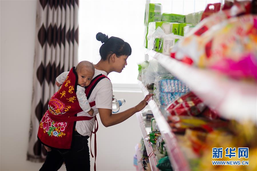 在大興地鎮維拉壩“珠海小區”的超市,村民三春梅在挑選商品(6月24日攝)。新華社記者胡超攝