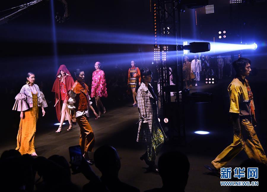 11月9日,模特在閉幕儀式上展示服裝。 當日,為期3天的2019青島世界大學生時尚設計大賽在山東省青島市落下帷幕。據介紹,本次大賽展示了國內外25所設計院校的青年設計師的50套服裝作品。 新華社記者 李紫恒 攝