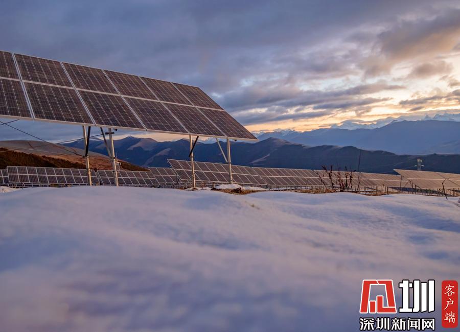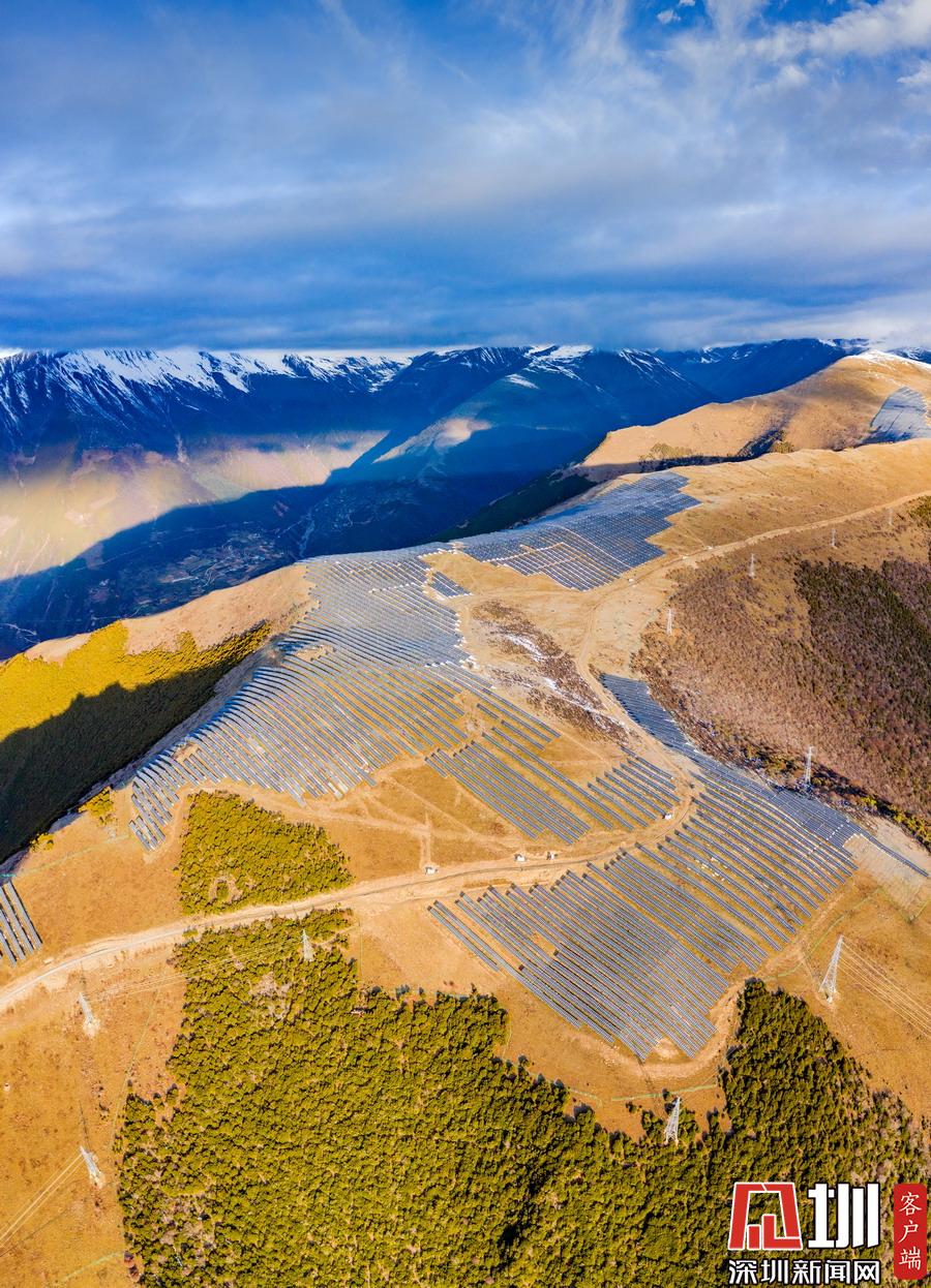 位于海拔3900米的四川省阿壩州小金縣大壩口村,場面壯觀的光伏發電廠占據了整個山脈。