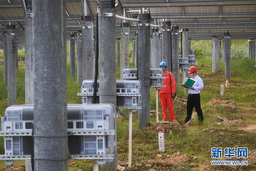 9月26日,工作人員在巡檢湖州市埭溪鎮東紅村的光伏發電站。新華社記者徐昱攝
