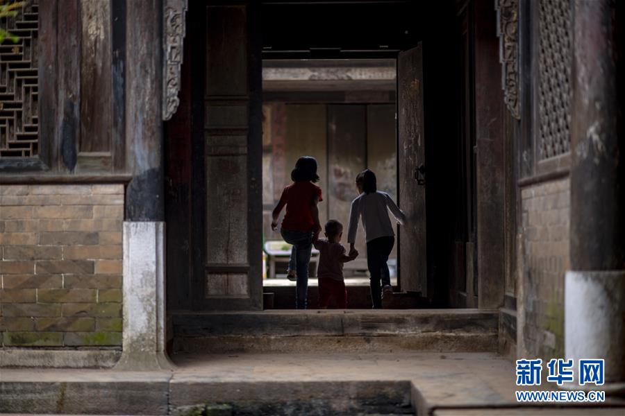 石屏縣異龍鎮符家營村的小朋友們在村里的老屋玩耍(8月8日攝)。新華社記者江文耀攝