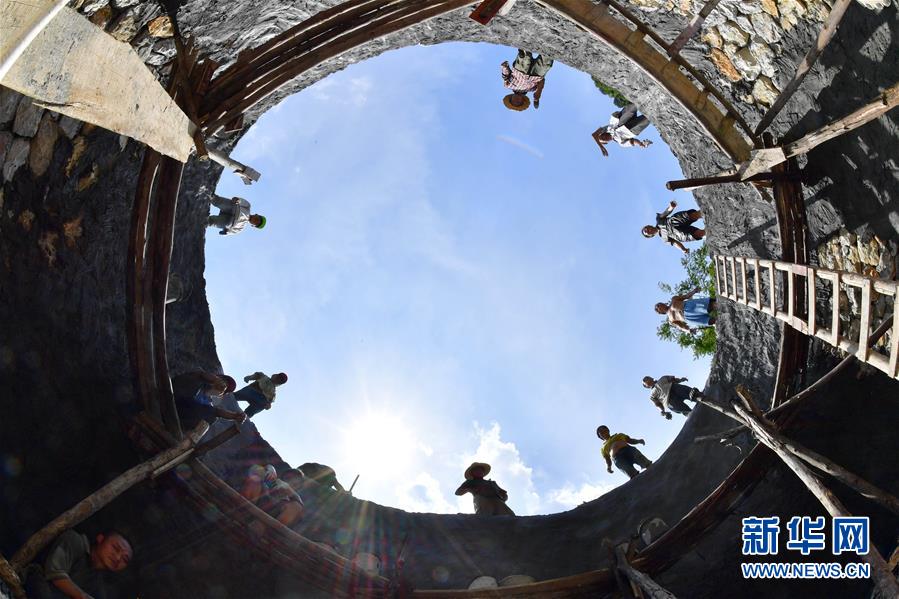 在廣西大化瑤族自治縣板升鄉弄勇村,群眾在修建家庭水柜(2017年9月2日攝)。新華社記者黃孝邦攝