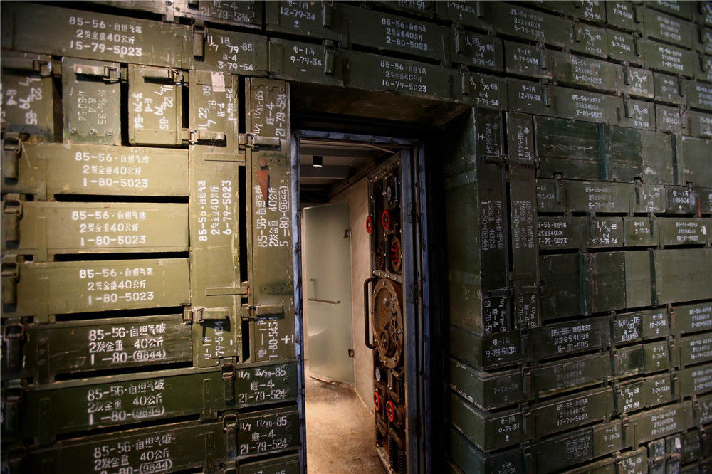 2017年6月18日,河南濟源王屋山“那些年小鎮”一退役兵工廠內,一處用千余個彈藥箱和軍工零部件打造而成的奇特洗手間驚艷亮相。DF/視覺中國