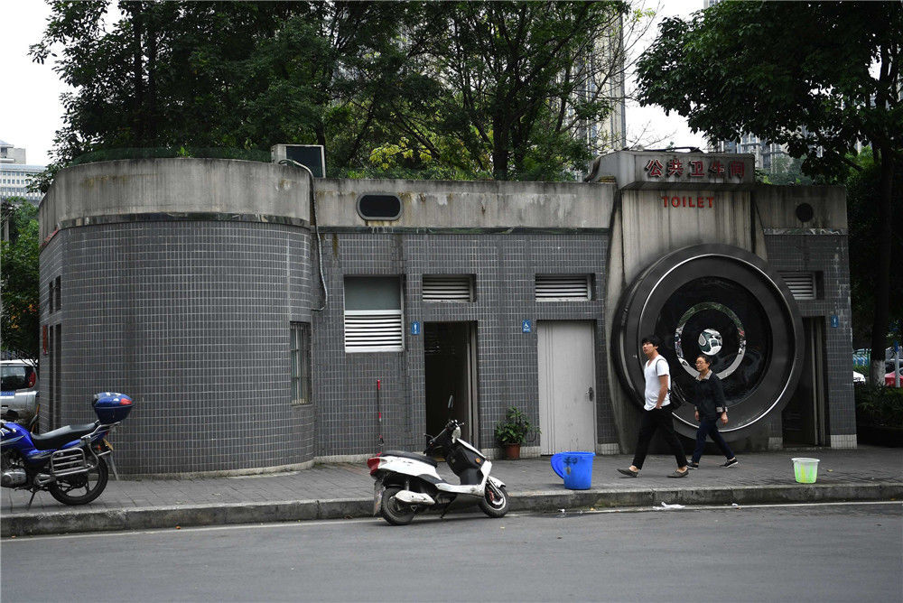 2017年5月5日,重慶,市民經過街頭創意“照相機”廁所都會駐足觀看。以“照相機”外形來修建的公共衛生間,成為一道創意城市風景線。徐勇/視覺中國