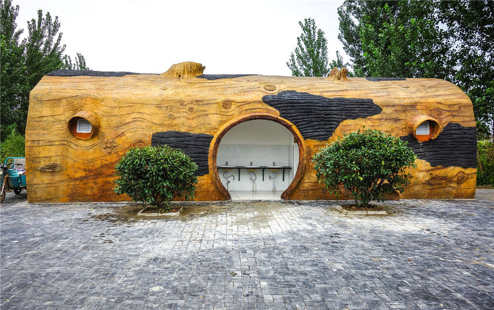2016年8月8日,安徽淮北,一所酷似大樹干的藝術造型公廁,亮相于淮北段園鎮大莊村葡萄采摘園里,引來很多市民的關注。吳克濤/視覺中國