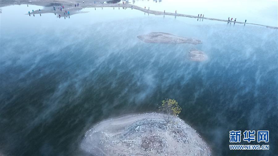 11月14日,游客在奇墅湖邊拍攝風光。 初冬時節,安徽省黃山市黟縣奇墅湖晨霧縹緲,別具韻味。新華社記者劉軍喜攝