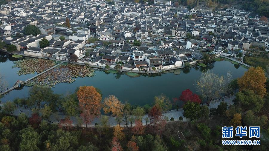 這是11月15日無人機拍攝的宏村風景區晨景。新華社記者韓曉雨攝