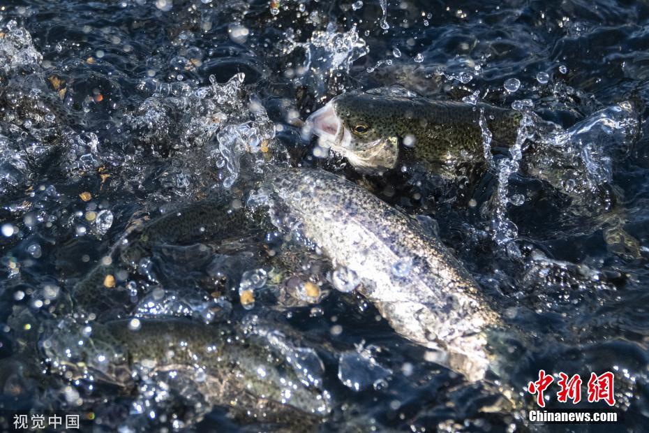 當地時間2019年11月17日,美國加州薩克拉門托,實拍洄游產卵的鮭魚。